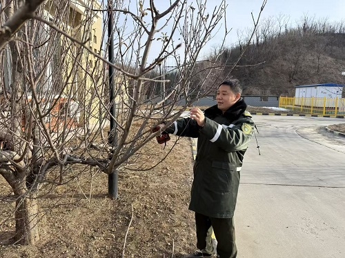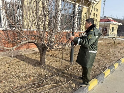 修剪过程中,齐亚飞同志充分发挥先锋模范作用,以不怕苦、不怕累的态度投入到工作中,其专注的身影成为站区冬日里一道暖心的风景线。经过一番精心修剪,原本杂乱的果树枝条变得层次分明,错落有致,站区的绿化面貌也焕然一新。