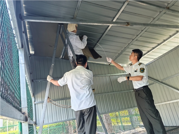 自入秋以来,收费站便提前谋划冬季鸡棚管护工作。站长刘建辉在工作部署会上明确要求,既要保障鸡群安全越冬,又要严控成本、杜绝浪费,“要把每一份资源都用在‘刀刃’上”。这一思路迅速落地——针对鸡棚冬季保温需求,团队发现站内堆积的剩余被褥虽无法再用于职工住宿,但其保暖性能完好,恰好可转化为鸡棚的“防护屏障”。施工过程中,副站长陈亚鹏带领职工们分工协作,他们精准测量鸡棚房顶尺寸,在被褥上钻孔绑铁丝,相互配合将被褥整齐铺盖、固定。经过数小时的忙碌,一块块旧被褥化身鸡棚的“保暖外衣”,不仅能在冬季阻挡寒风侵入,还能在夏季隔绝烈日暴晒,真正实现“冬暖夏凉”的效果。