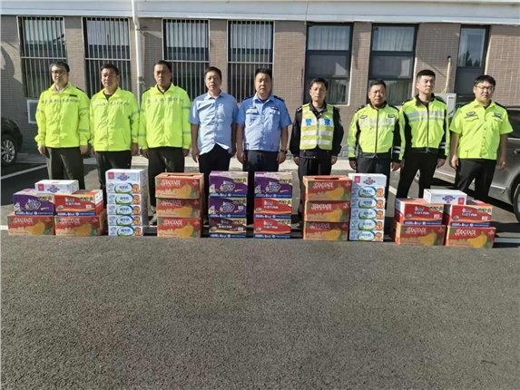 会后,为进一步深化警站协作,鼓励和感谢地方交警大队在引车上路、保障安全畅通等方面对曲阳收费站的关键支持,曲阳收费站为曲阳县公安局交通管理大队郎家庄中队、灵山中队敬赠锦旗,并为全体民警送去保障工作所需的方便面、火腿肠、牛奶、水果等慰问品。