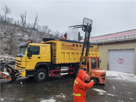 为确保除雪工作顺利开展,阜平东养护工区成立以工区主任为组长的调度小组,全局掌控,结合岗位职责和降雪情况,将人员分工分组,融雪剂装载、路况巡视、后勤保障等各项工作同步推进。