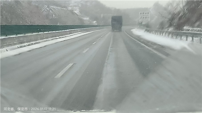 1月17日早7:50分阜平区域出现降雪,保阜公司阜平东养护工区主任李文刚立即牵头响应,启动预案,全员备岗,物资、设备整装待发。
